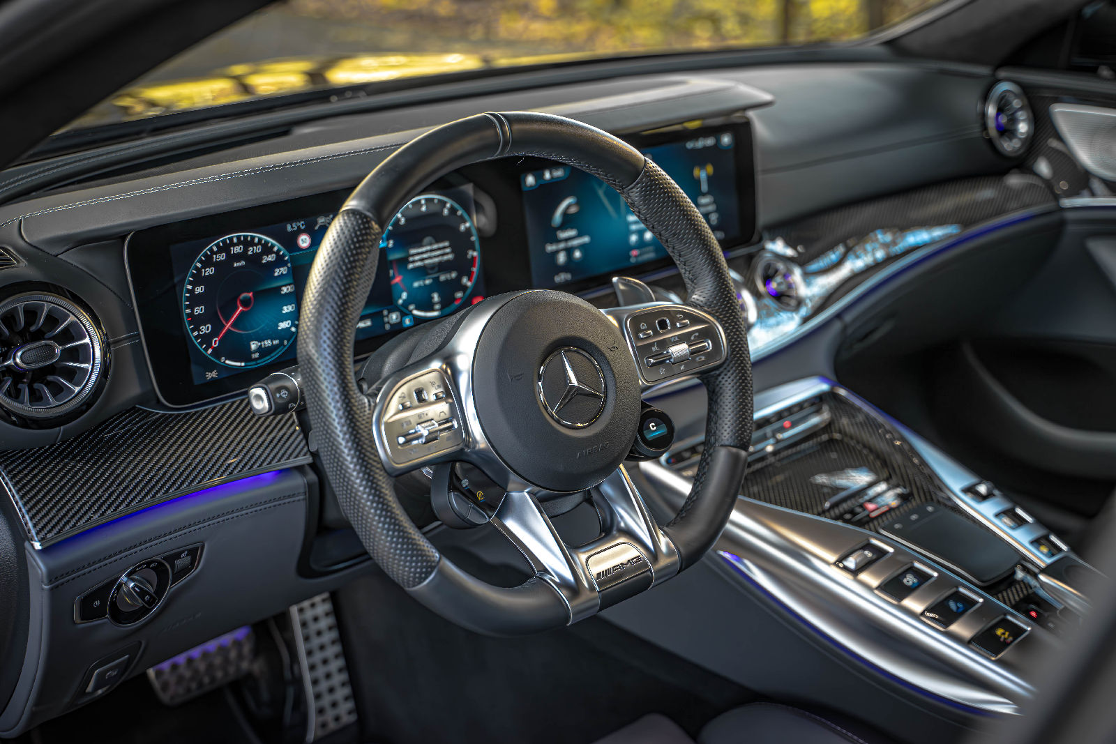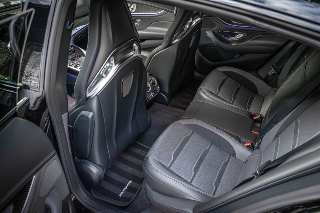 Wnętrze GT63 S łączy sportowy charakter z luksusem. Fotele AMG zapewniają doskonałe podparcie, a wykończenie wnętrza obejmuje najwyższej jakości materiały i najnowsze technologie. System MBUX z dedykowanymi funkcjami AMG dostarcza informacji na temat osiągów i konfiguracji pojazdu. Z zewnątrz samochód zachwyca agresywną linią, szerokim nadwoziem i aerodynamiką, które nie tylko podkreślają jego charakter, ale również poprawiają wydajność. Mercedes-AMG GT63 S to wyjątkowy samochód, który łączy świat luksusu i ekstremalnych osiągów w jedną, niesamowitą całość.